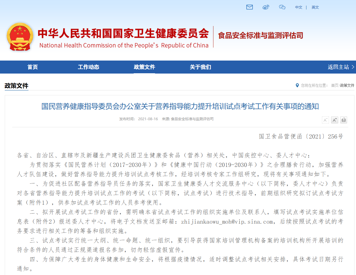 重磅新闻!国家卫建委人才中心:营养指导员证书招生已开始!!!(附上考试计划)河南人人教育 河南人人教育培训中心 河南为适应我国营养人才综合素质提升和职业能力发展的需要,落实《营养指导能力提升培训方案(试行)》工作要求,加强我国营养专业队伍建设,提高营养从…